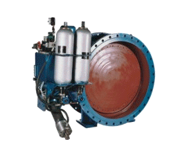 1、本閥的驅動系統為中同壓兩級驅動裝置,該裝置體積小而蝶閥啟閉速度的調控范圍大,初開啟段為高壓小流量控制,使蝶閥開啟瞬間狀態平緩,無劇烈波動,完全消除系統內的水錘隱患,然后將切入較快的轉動角速度,液壓缸將以設定的理想推力與速度將蝶板平穩打開。