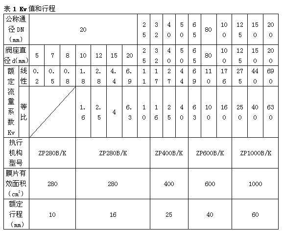 注 1)對于ZXPW型單座波紋管密封調節閥,最大允許壓差為1.0MPa,表中數據若數值小于1.0MPa則不變,