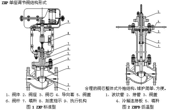 1、頂導向單座調節閥,結構緊湊,部件少、易維修。