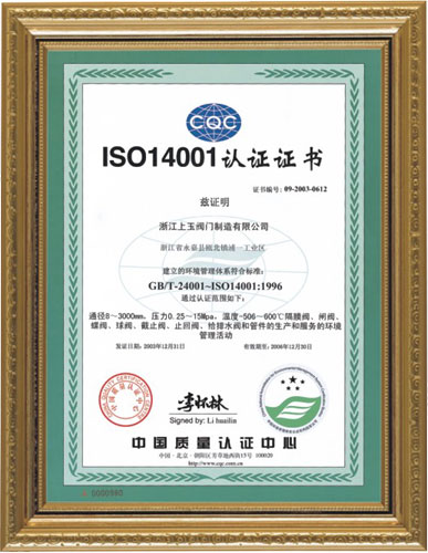 CQC ISO14001 認證證書